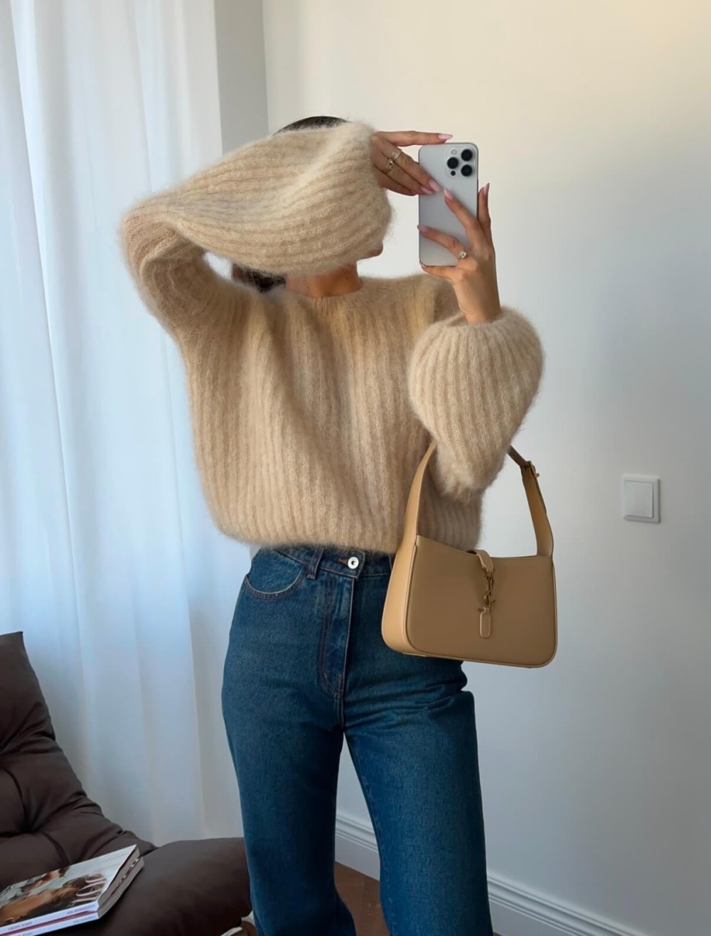 Sweterek 81% superkid mohair Yarn jasno beżowy