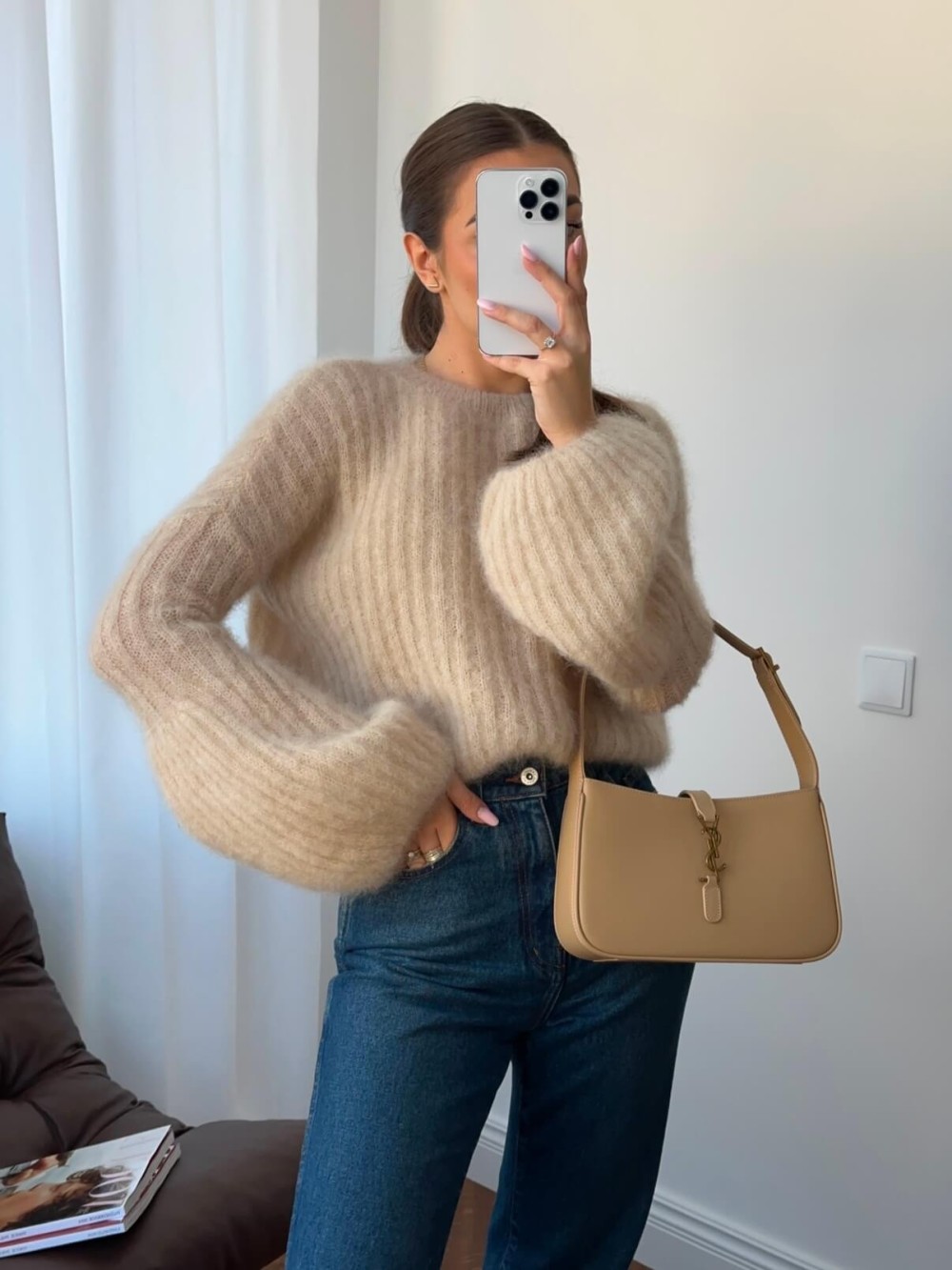 Sweterek w kolorze jasnego beżu to idealna baza do wiosennych stylizacji, ponieważ łatwo dopasujesz go do wielu elementów garderoby. Możesz połączyć go z ciemnymi jeansami i balerinami, tworząc kobiecy look, który sprawdzi się zarówno na co dzień, jak i podczas spaceru z przyjaciółmi. Dla bardziej eleganckiego efektu warto zestawić go z ołówkową spódnicą i botkami na obcasie, co nada stylizacji szyku i klasy. Dzięki uniwersalnemu krojowi i luźnym rękawom, sweter nie tylko podkreśla atuty sylwetki, ale także świetnie prezentuje się w codziennych oraz bardziej wyszukanych zestawieniach. Sprawdzaj nasze nowości regularnie, aby tworzyć swoje ulubione stylizacje na każdą okazję!