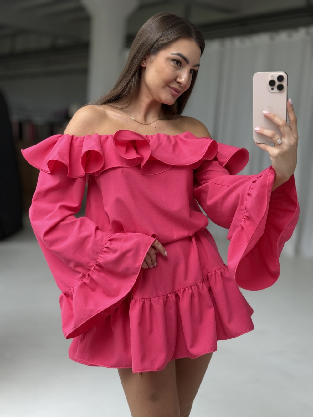 Sukienka hiszpanka Las Palmas z łańcuszkiem fuksjowa