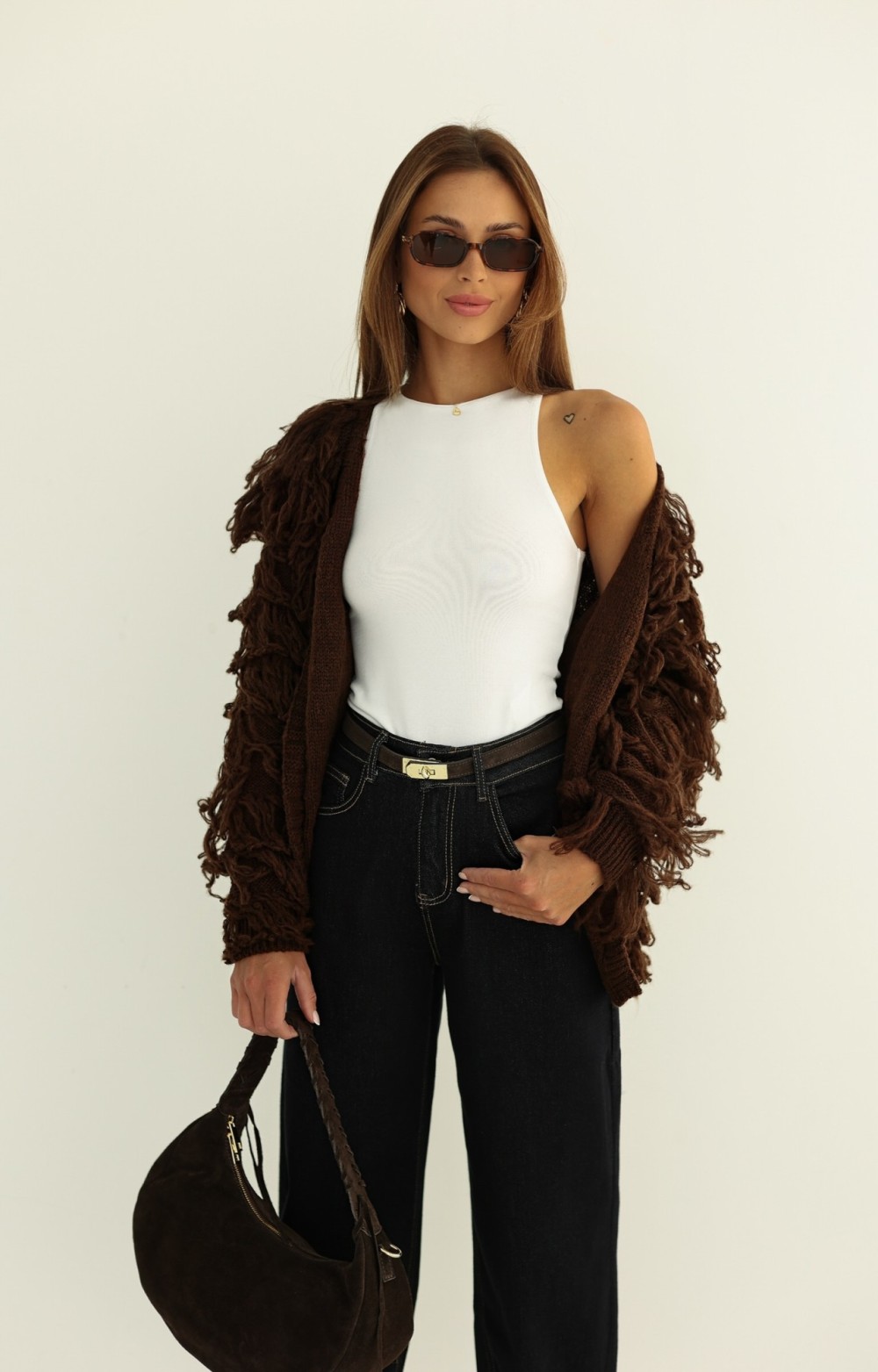 Pasek ze skóry naturalnej ze złotą klamrą to wyjątkowy dodatek, który podkreśli każdą stylizację. Wykonany z wysokiej jakości skóry naturalnej, jest zarówno trwały, jak i modny. Złota klamra dodaje elegancji, sprawiając, że pasek staje się subtelnym, ale efektownym akcentem. Dzięki regulowanej długości pasuje na osoby noszące rozmiary od XS do XL, zapewniając komfort i idealne dopasowanie.