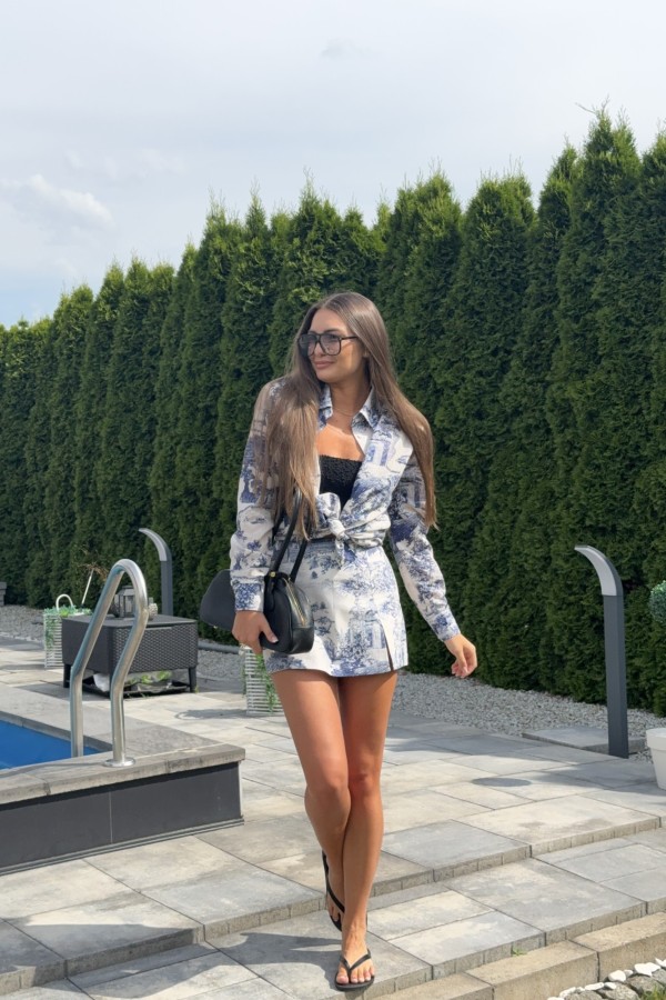 Lniana koszula z poduszkami w efektowny print to połączenie klasyki i najnowszych trendów w jednym modelu. Fason z długim rękawem i usztywnionymi ramionami pięknie podkreśla sylwetkę, a delikatnie przedłużony krój dodaje nonszalancji. Koszula sprawdzi się zarówno w eleganckiej stylizacji z szortami lub spódnicą, jak i w bardziej casualowej wersji – narzucona na strój kąpielowy lub przewiązana w pasie.