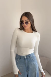 Gładka bluzka z długim rękawem i poduchami na palec czekoladowa