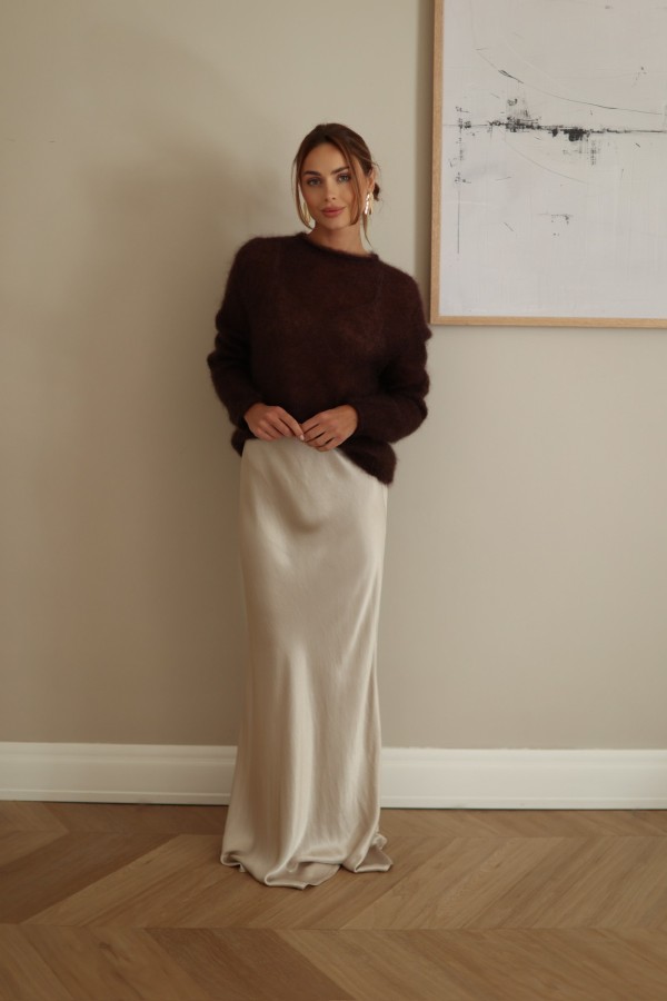 Sweter premium z kid moheru 80% Sofi czekolada