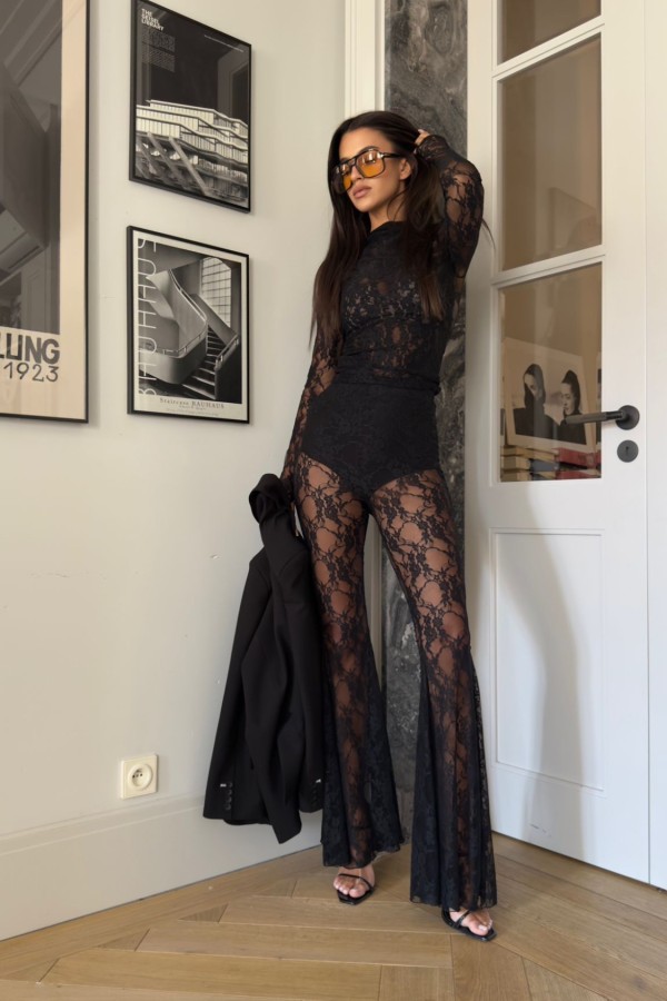 Czarna bluzka koronkowa z dopasowanym topem to klasyka w nowoczesnym wydaniu. Transparentna, miękka koronka dodaje elegancji i kobiecości, a lekki top w komplecie zapewnia wygodę i pełną swobodę stylizacji. Oversize’owy krój bluzki idealnie sprawdzi się zarówno na co dzień, jak i na wieczorne wyjścia – wystarczy zmienić dodatki!