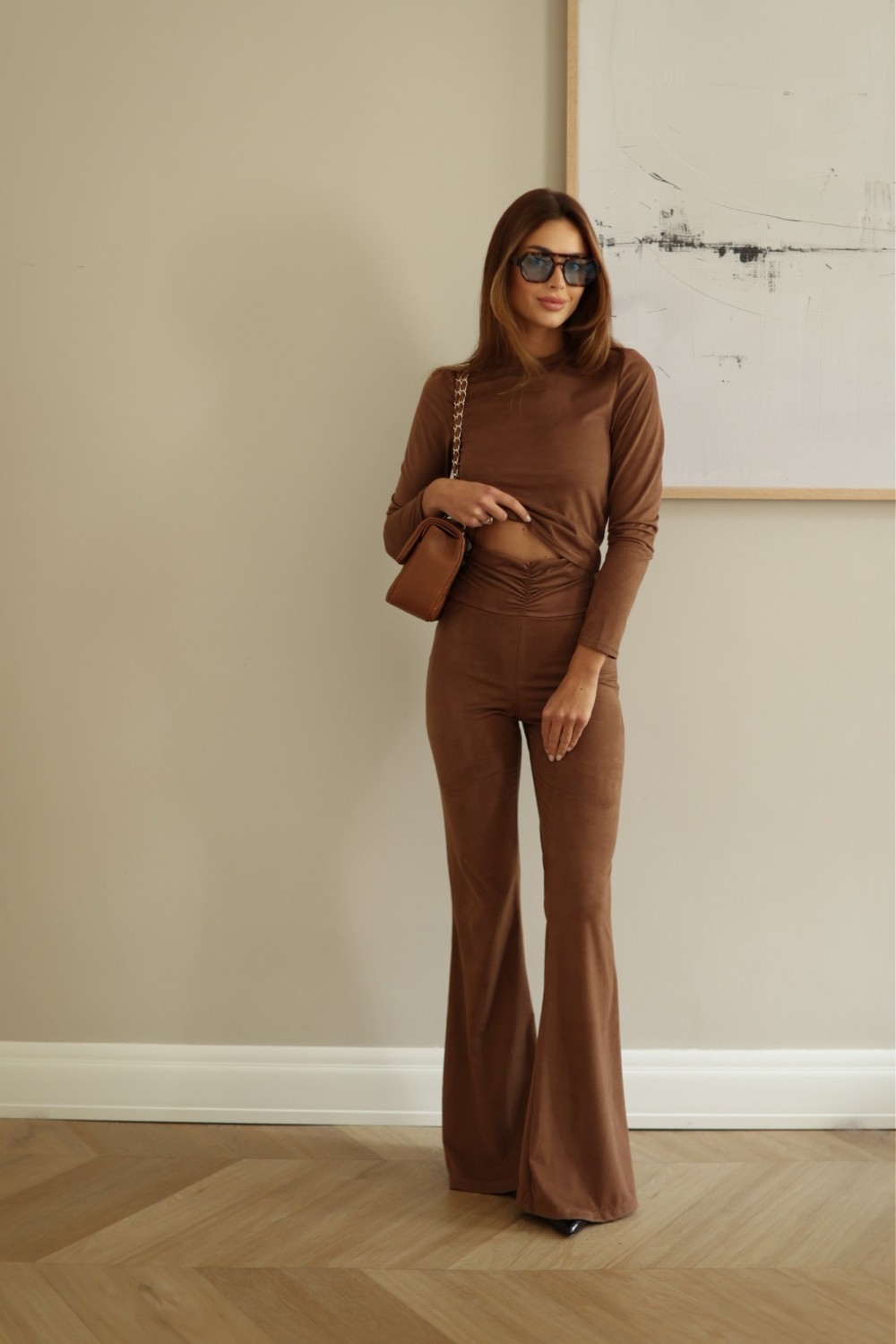 Spodnie zamszowe z modelującym marszczeniem Mona cynamonowe