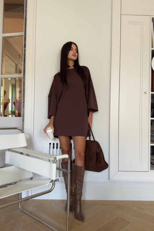 Sukienka / T-shirt oversize z grubszej bawełny czekoladowa