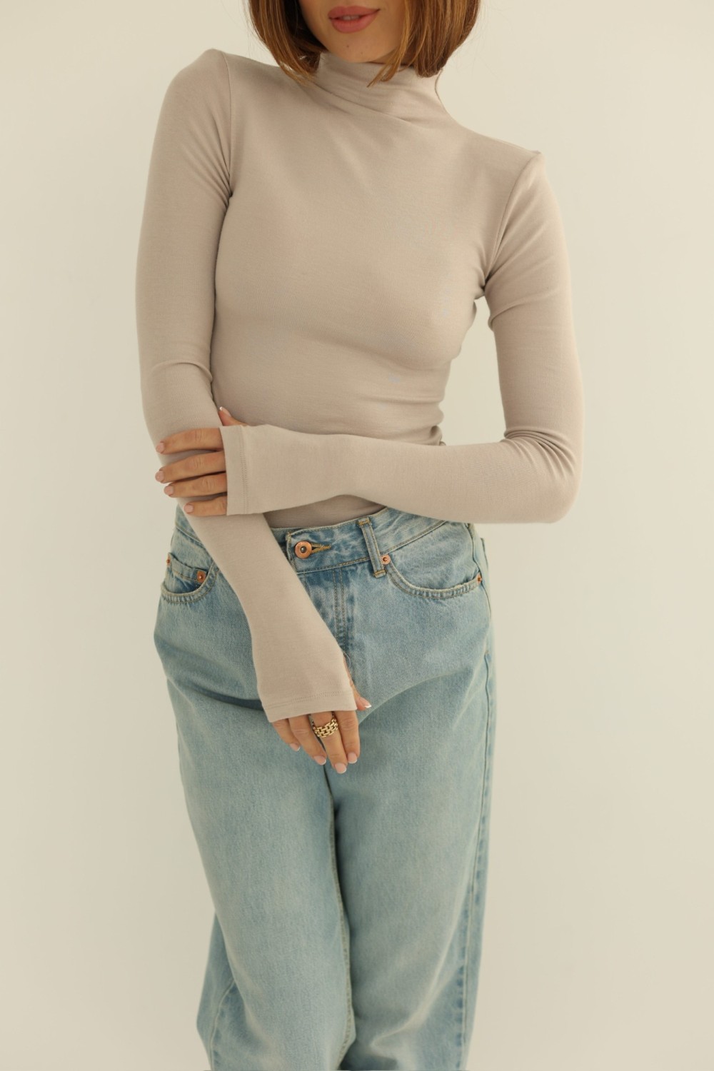 Gładki półgolf z poduszkami zakładany na palec beżowy