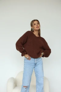 Sweter z baby alpaki z rękawem wykończonym falbanką to model, który łączy klasykę z subtelnym, kobiecym detalem. Ma miękką fakturę, jest przyjemny w dotyku i pięknie układa się na sylwetce. Falbankowe wykończenie rękawów dodaje mu lekkości i sprawia, że wygląda wyjątkowo w każdej stylizacji.To sweter idealny zarówno do eleganckich spodni, jak i ulubionych jeansów. Ciepły, wygodny i z włoskim wyczuciem stylu – idealny na chłodniejsze dni