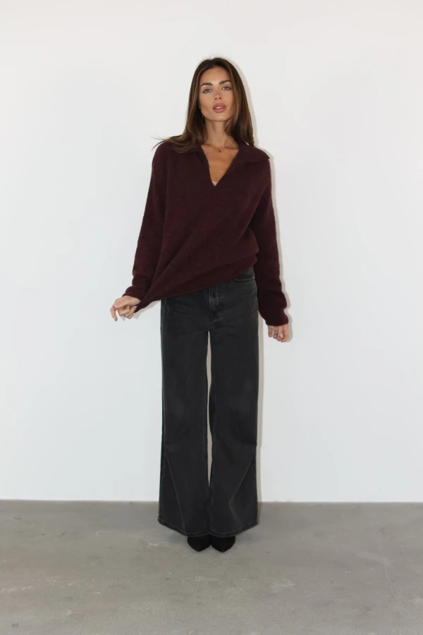 Sweter z kołnierzykiem 30% alpaca super fine bordowy