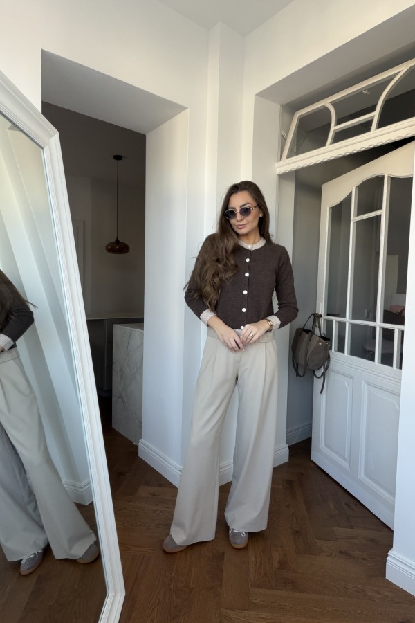Kardigan 100% wełna Marie z ozdobnymi guzikami czekoladowo-beżowy