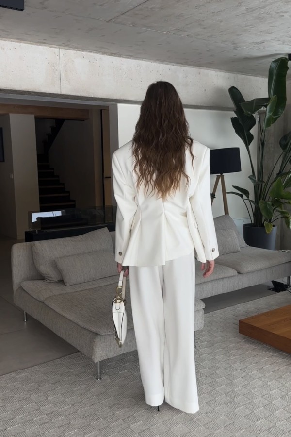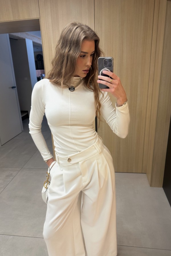 Spodnie garniturowe Viola z wysokim stanem i szeroką nogawką ecru