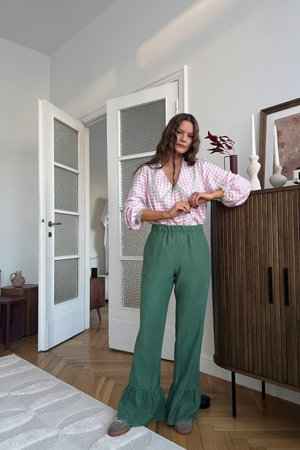 Koszula z kołnierzem vintage różowa kratka to lekka, kobieca propozycja z wyraźnym retro twistem. Subtelna różowa kratka i ozdobny kołnierz od razu robią klimat, a luźniejszy fason sprawia, że koszula dobrze układa się na sylwetce i daje pełen komfort noszenia. Świetnie wygląda zarówno z jeansami i spodniami z wysokim stanem, jak i ze spódnicą, gdy chcesz dodać stylizacji trochę romantycznego charakteru. To model, który bez kombinowania podkręca codzienny look i sprawdza się przez cały dzień.
