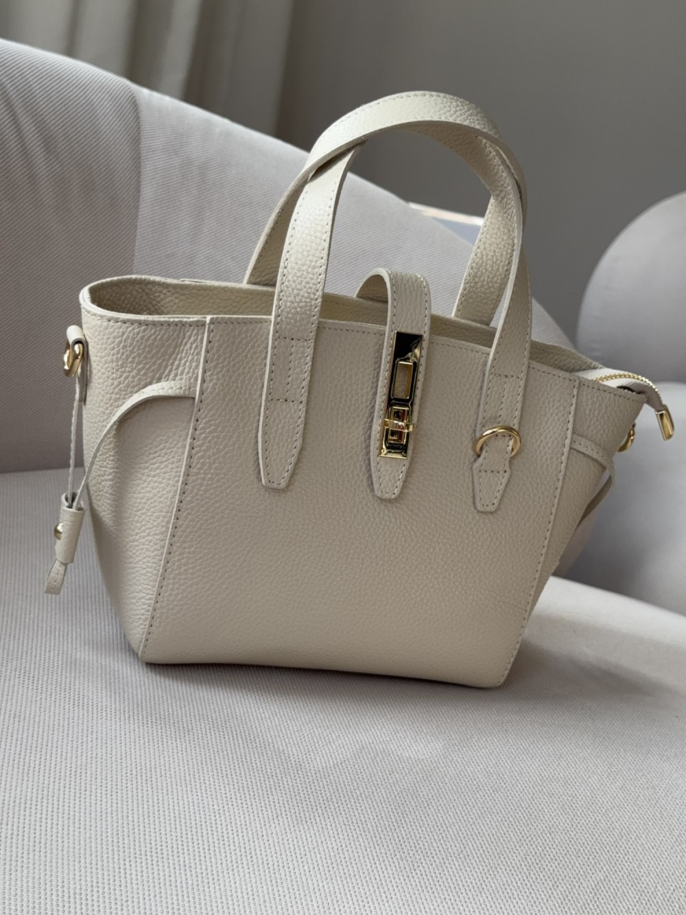 Stylowa torebka w kolorze kremowym. Została wykonana w 100% ze skóry naturalnej, dlatego możesz być spokojna o jej jakość i trwałość. Ten model spodoba się fankom dużych dodatków, które doskonale pasują do miejskich outfitów z charakterem. Torebka damska będzie się znakomicie prezentować razem z płaszczykiem czy ramoneską.