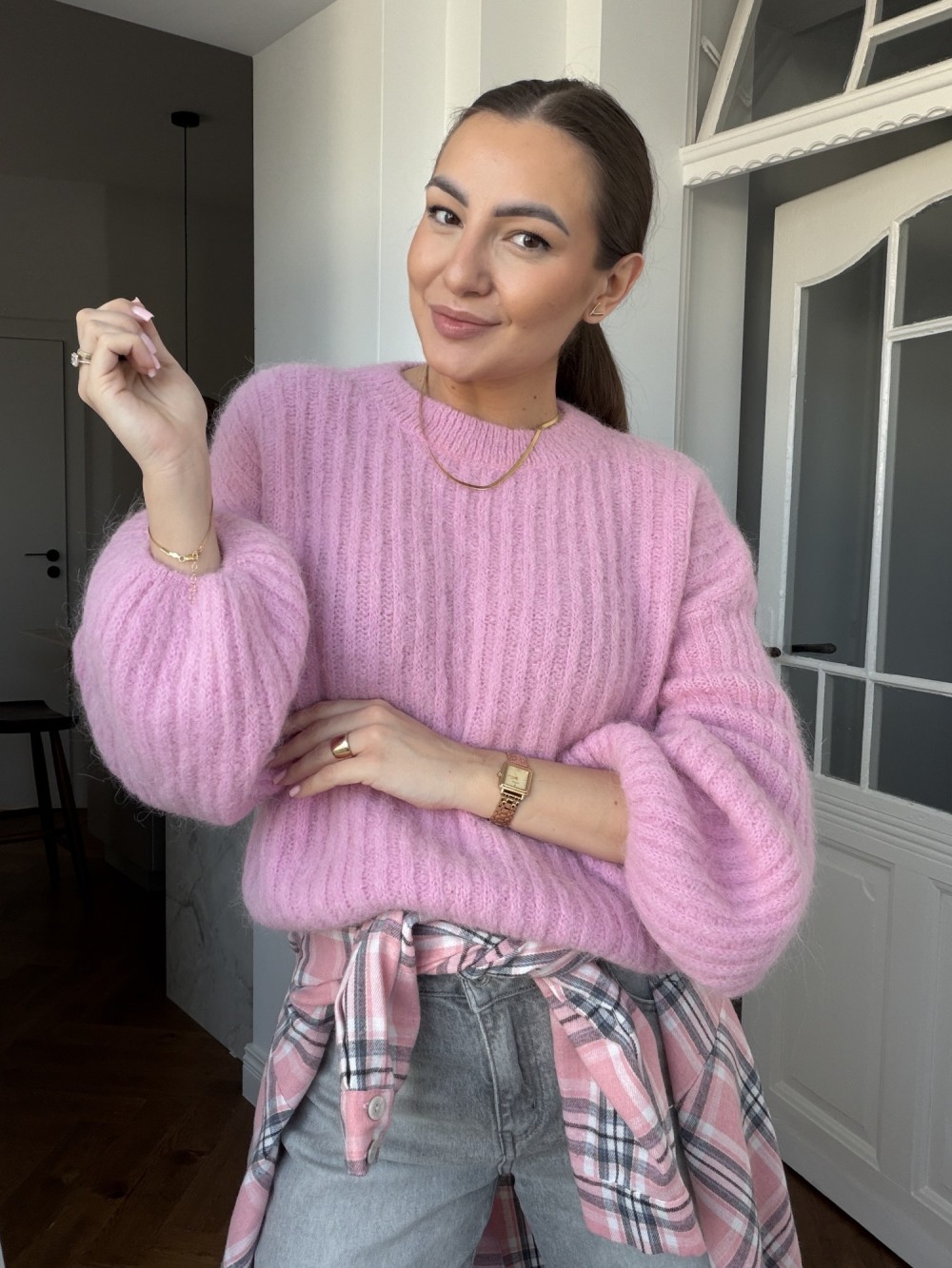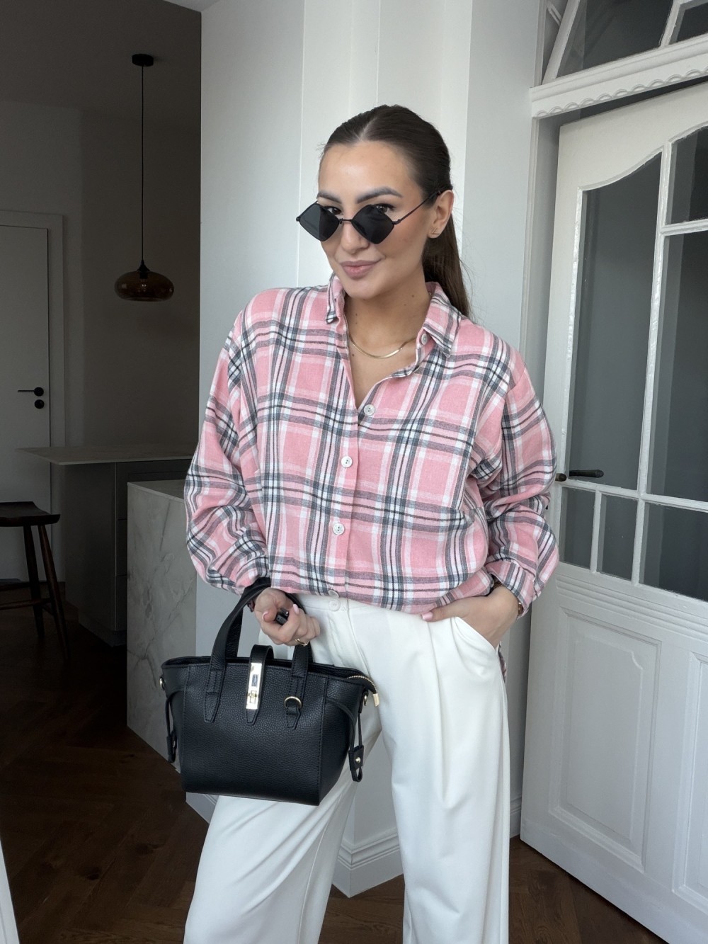 Koszula w kratę Moe różowa