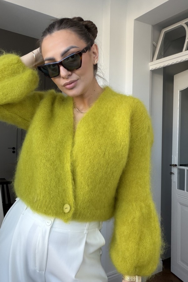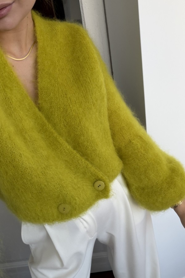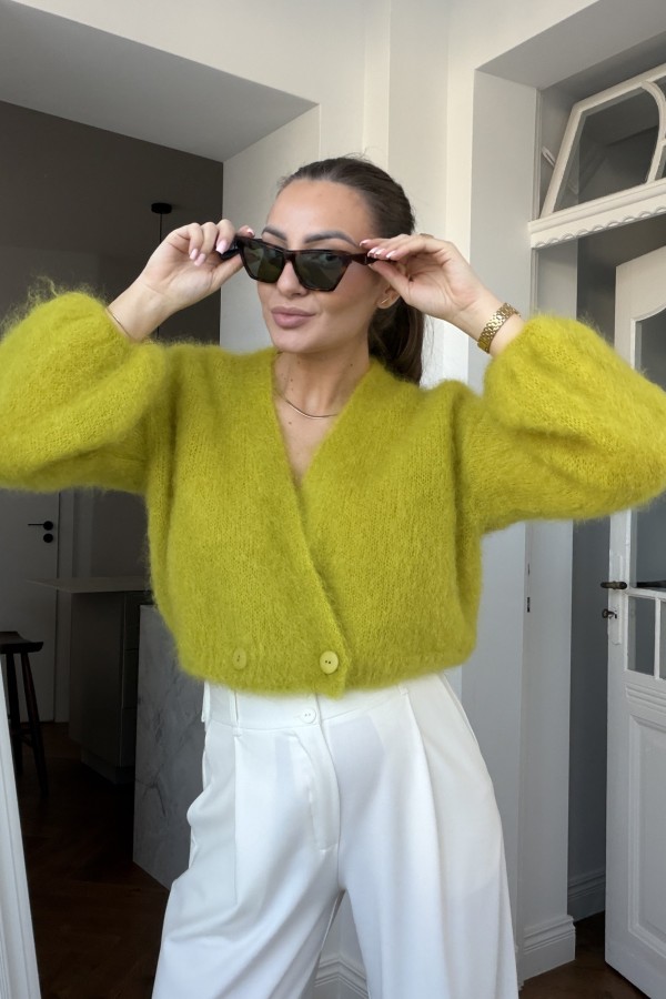 Krótki kardigan Lisa 81% kid mohair moss green