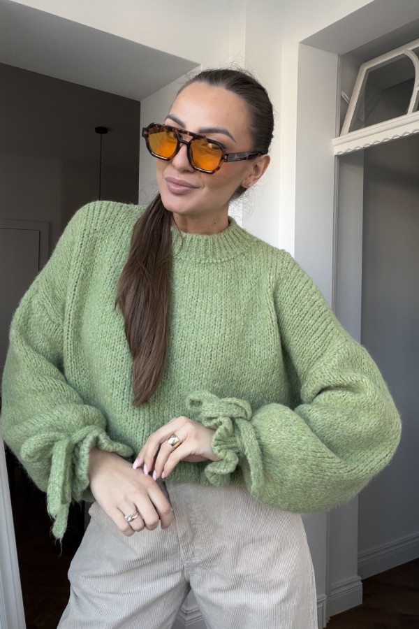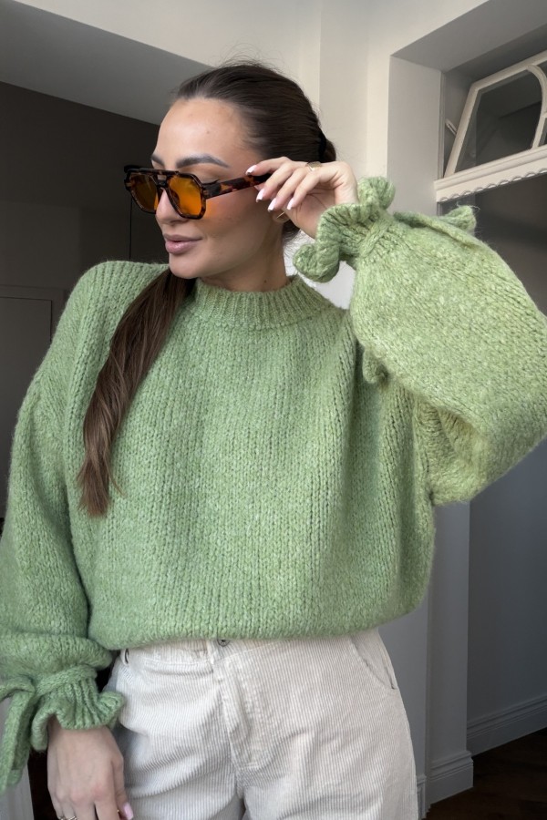 Sweter Cindy z ozdobnym rękawem pistacjowy