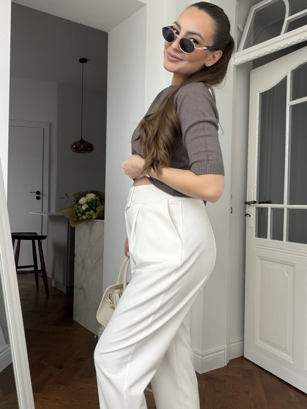 Modne spodnie o kroju cygaretek. Są bardzo eleganckie, stylowe i świetnie układają się na sylwetce, wysmuklając nogi. Ten model możesz nosić w sezonie wiosenno-zimowym i wtedy, gdy zrobi się nieco cieplej. Połącz spodnie damskie z elegancką koszulą lub basicowym T-shirtem i marynarką. Musisz je mieć!