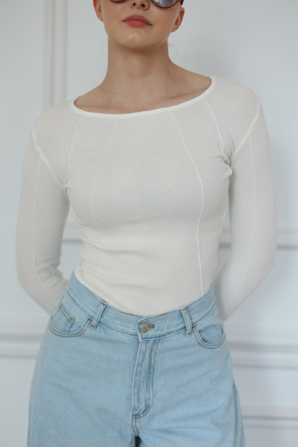 Bluzka bawełniana w prążek z przeszyciami łączy minimalizm z efektem modelowania sylwetki. Dopasowany krój podkreśla talię, a struktura materiału optycznie wydłuża górną część ciała. Idealna jako baza do stylizacji codziennych i bardziej eleganckich – jedna rzecz, wiele możliwości.