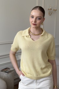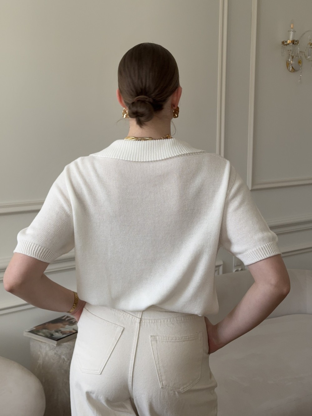 Sweterek damski polo na krótki rękaw 100% bawełna biały