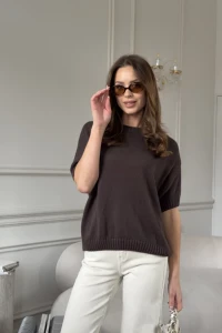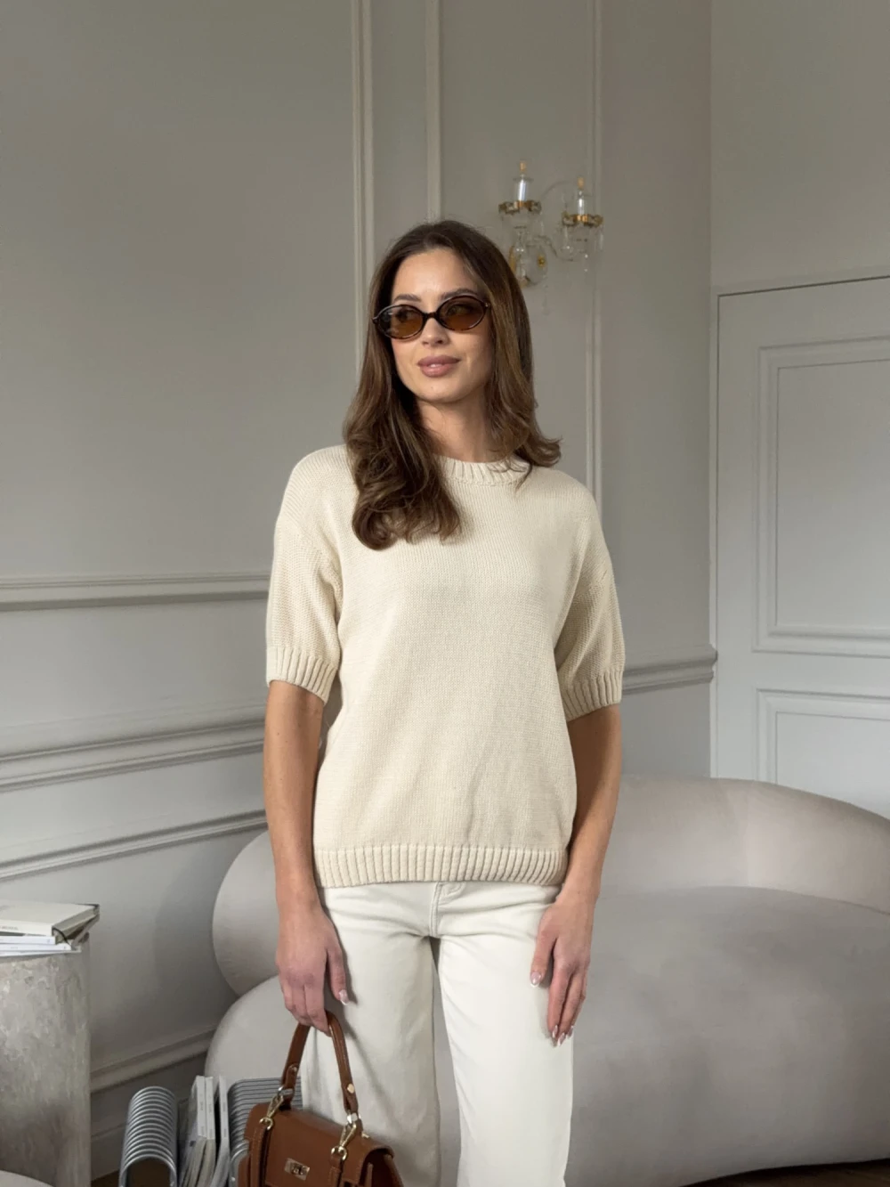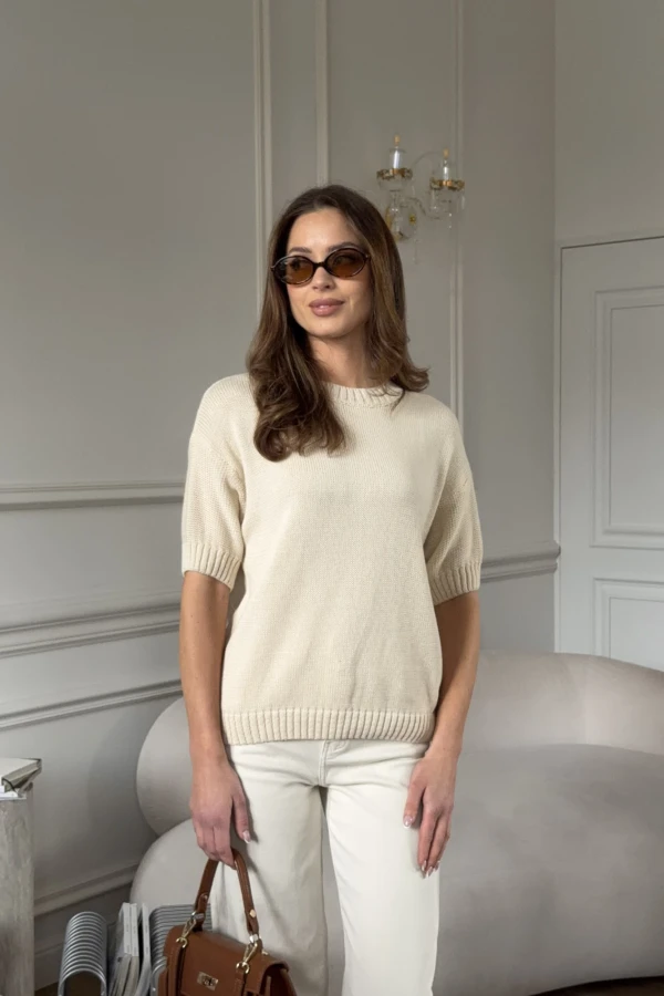 Sweterek damski na krótki rękaw 100% bawełna jasnobeżowy
