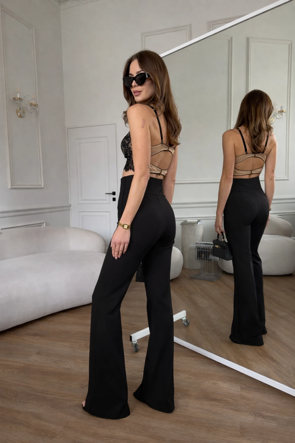 Spodnie damskie flare z przeszyciem wiskozowe Ashley czarne