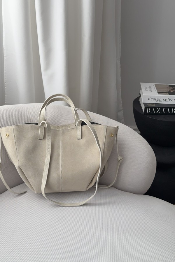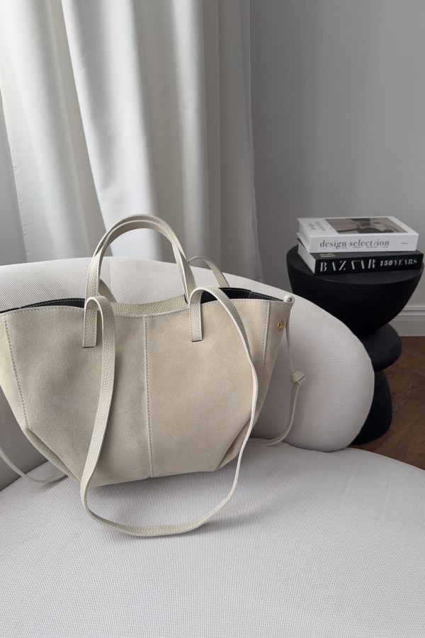 Skórzana torebka zamszowa Poli midi kremowa