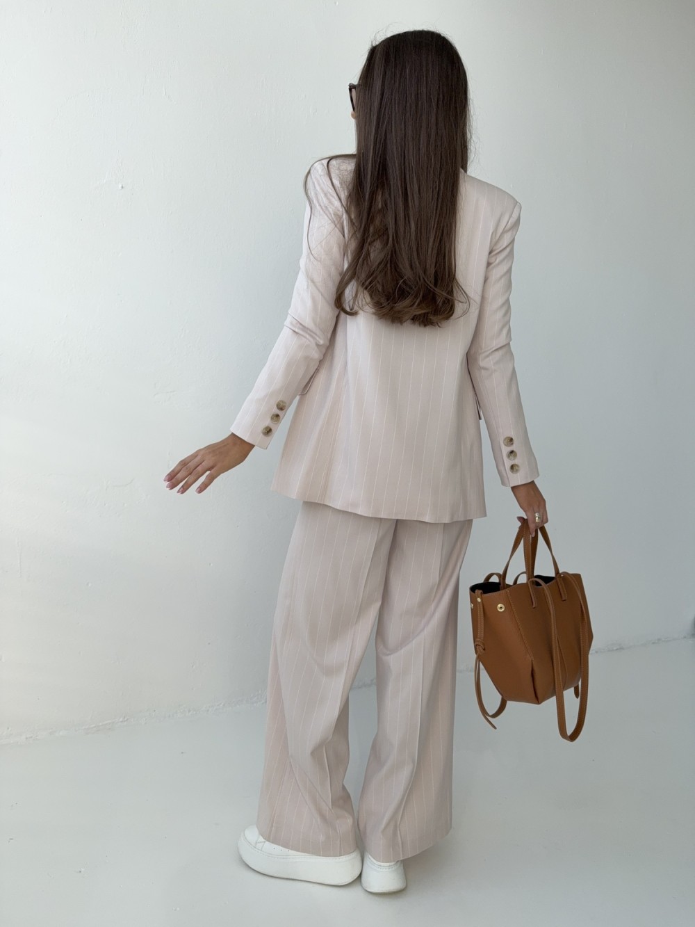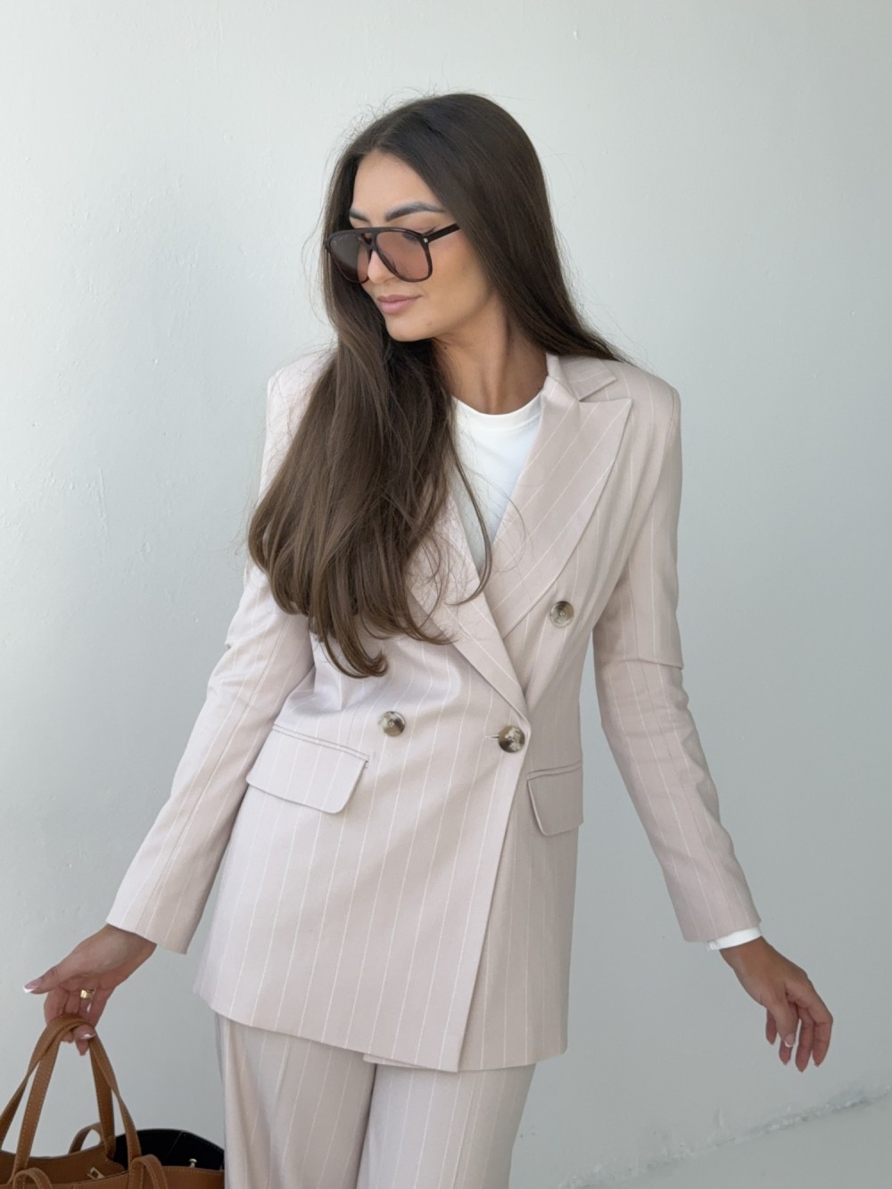 Marynarka w prążek Elida beżowa