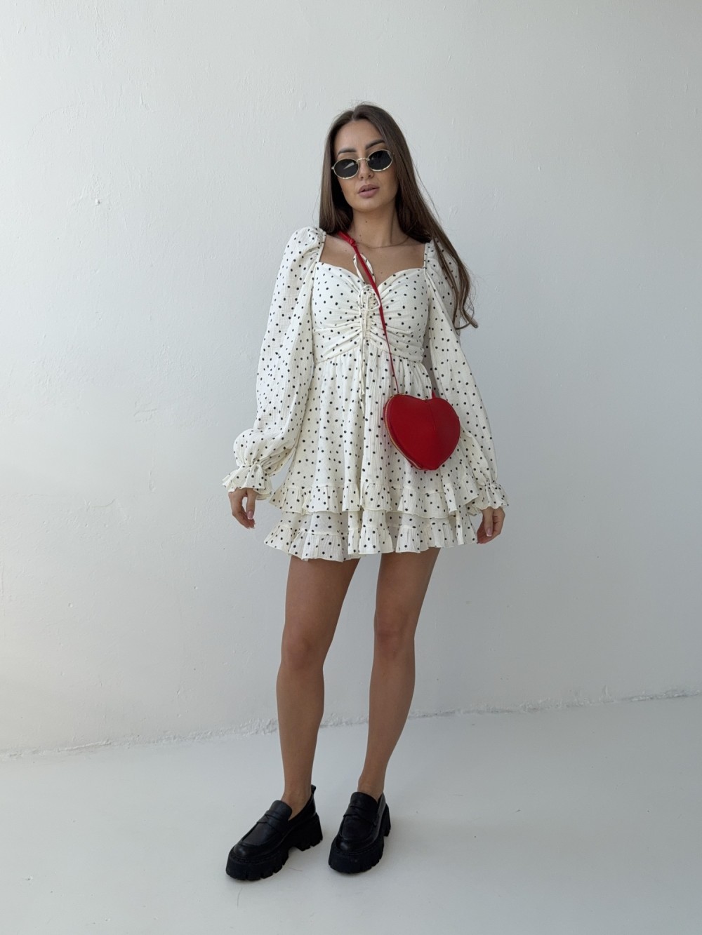 Sukienka muślinowa w groszki Linda to połączenie klasyki z odrobiną zabawy. Wykonana w 100% z bawełny, zapewnia przewiewność i komfort przez cały dzień. Jej delikatny fason, długie rękawy oraz subtelny dekolt w połączeniu z uroczym wzorem w groszki sprawiają, że jest to idealny wybór na ciepłe dni. Zestaw ją z naszą torebką w serce, aby dodać stylizacji jeszcze więcej kobiecego uroku.