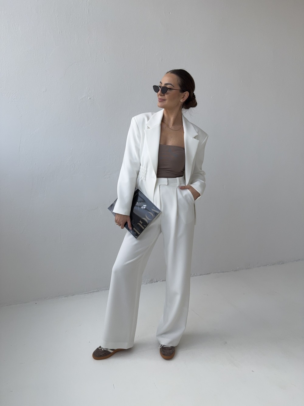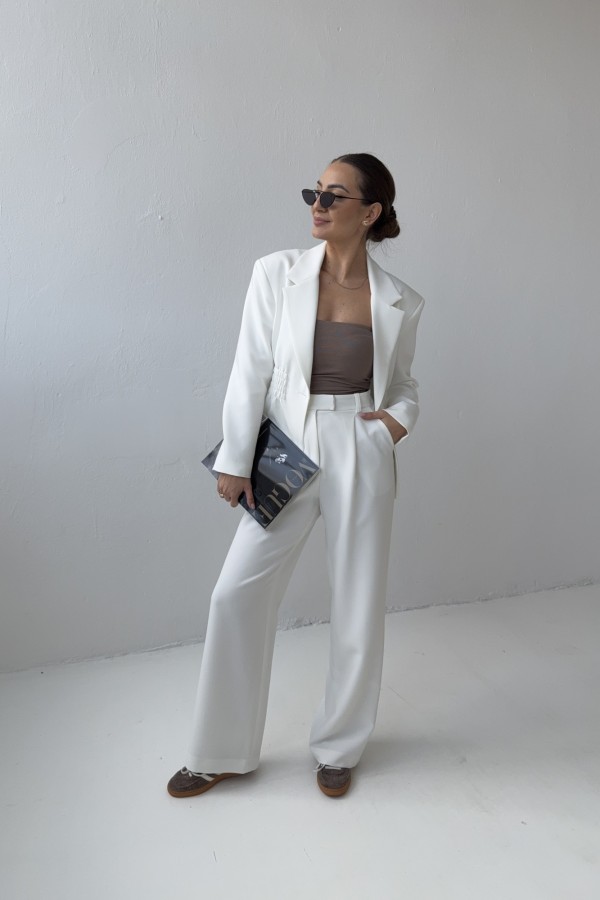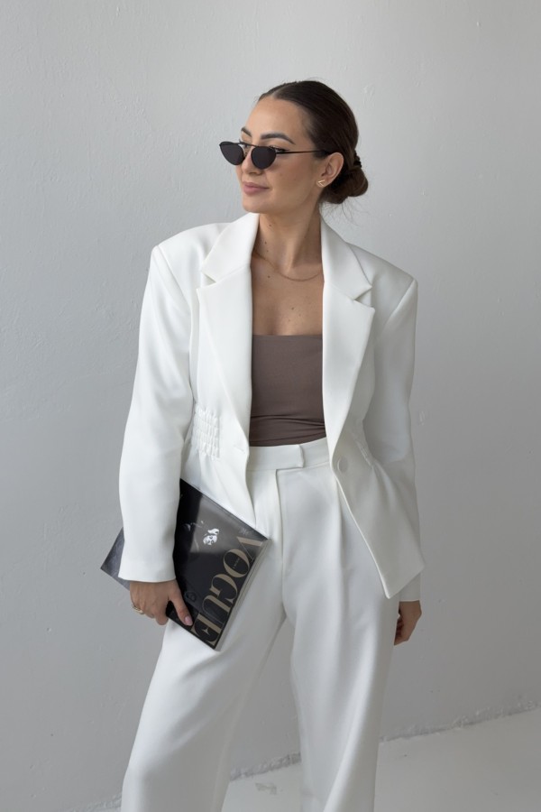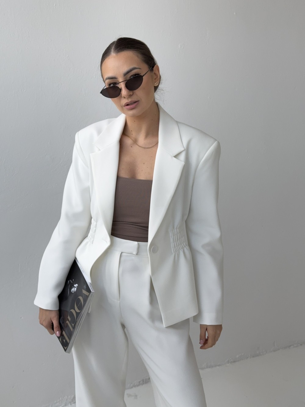 Biała marynarka Lorenzo to idealny wybór, jeśli szukasz elegancji z nutą świeżości. Jej jasny, czysty kolor wprowadza do garderoby powiew lekkości, a jednocześnie zachowuje ponadczasowy charakter. Biała marynarka doskonale pasuje do wielu stylizacji – od biurowych po wieczorowe, świetnie komponując się z innymi neutralnymi barwami, ale również wyrazistymi akcentami. Taliowany krój podkreśla sylwetkę, nadając jej kobiecości, a komfortowy materiał sprawia, że możesz ją nosić przez cały dzień. Idealna na ważne spotkania, randki czy eleganckie wyjścia – biała marynarka to must-have w każdej szafie.